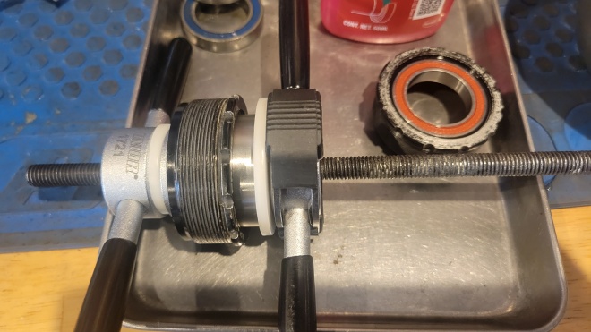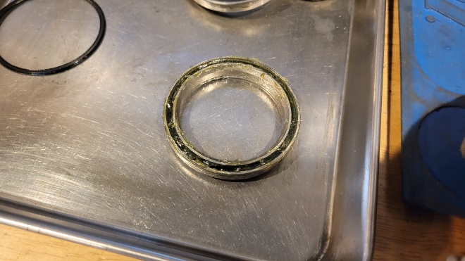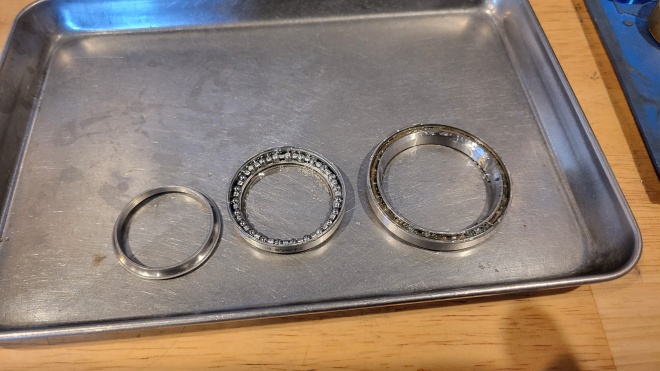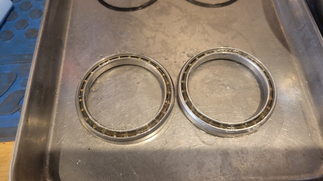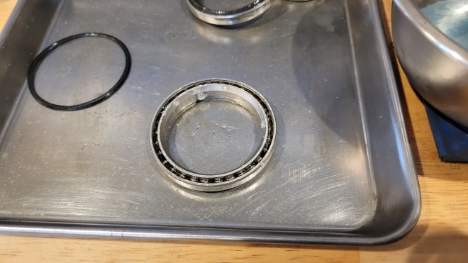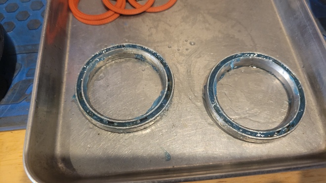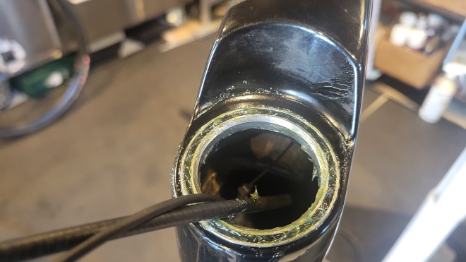 BBの方も同様ではありますが、ヘッドベアリングと比べると、回転の軽さも欲しいので、グリスの使い分けなど、色々な処理を施します。最近では、ボトムブラケットに打ち込まれているベアリングを日本性能高品質なものに打ち換えるなども・・・。