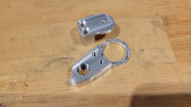例えば、ディレイラーハンガーなど、こちらは市販の部品よりも強度を上げたかったため、可能な限り肉厚を増やして作り直しました。